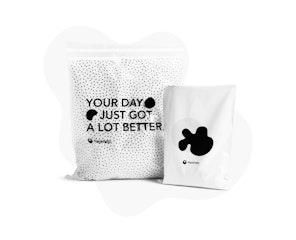 O pungă de curierat biodegradabilă imprimată cu un model standard.