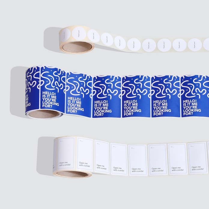 These custom labels are made of white, machine-coated paper with rubber-based glue. Your labels will be digitally printed using oil-based ink.