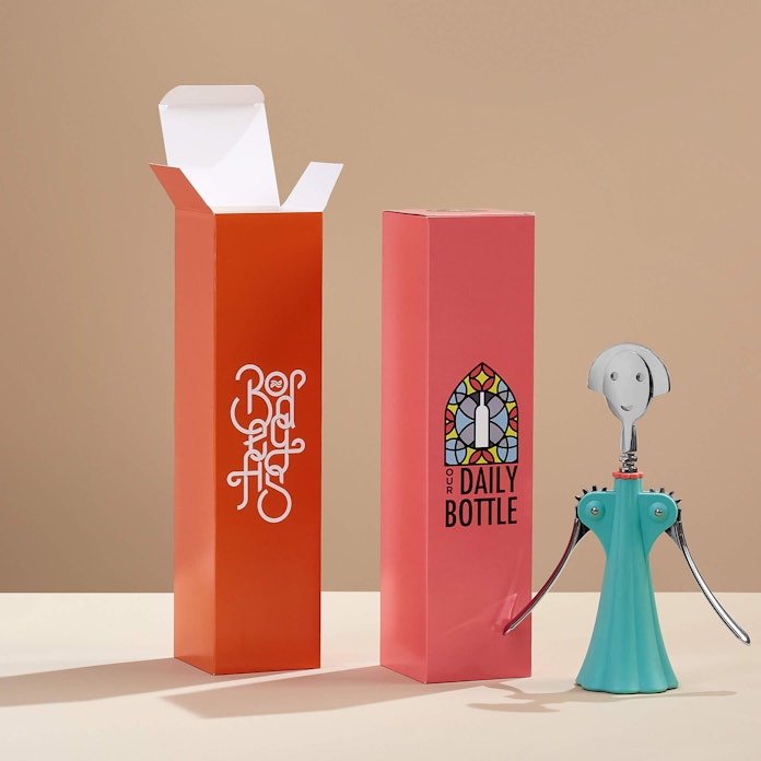 De speciale wijndozen worden voorgelijmd geleverd en hebben een zelfsluitende insert voor de bodem. Daarom kost het vouwen slechts enkele seconden. Meteen klaar om een wijnfles in te laten glijden!