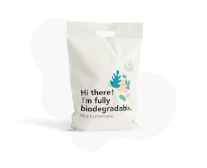 O pungă de curierat biodegradabilă imprimată cu un model standard.